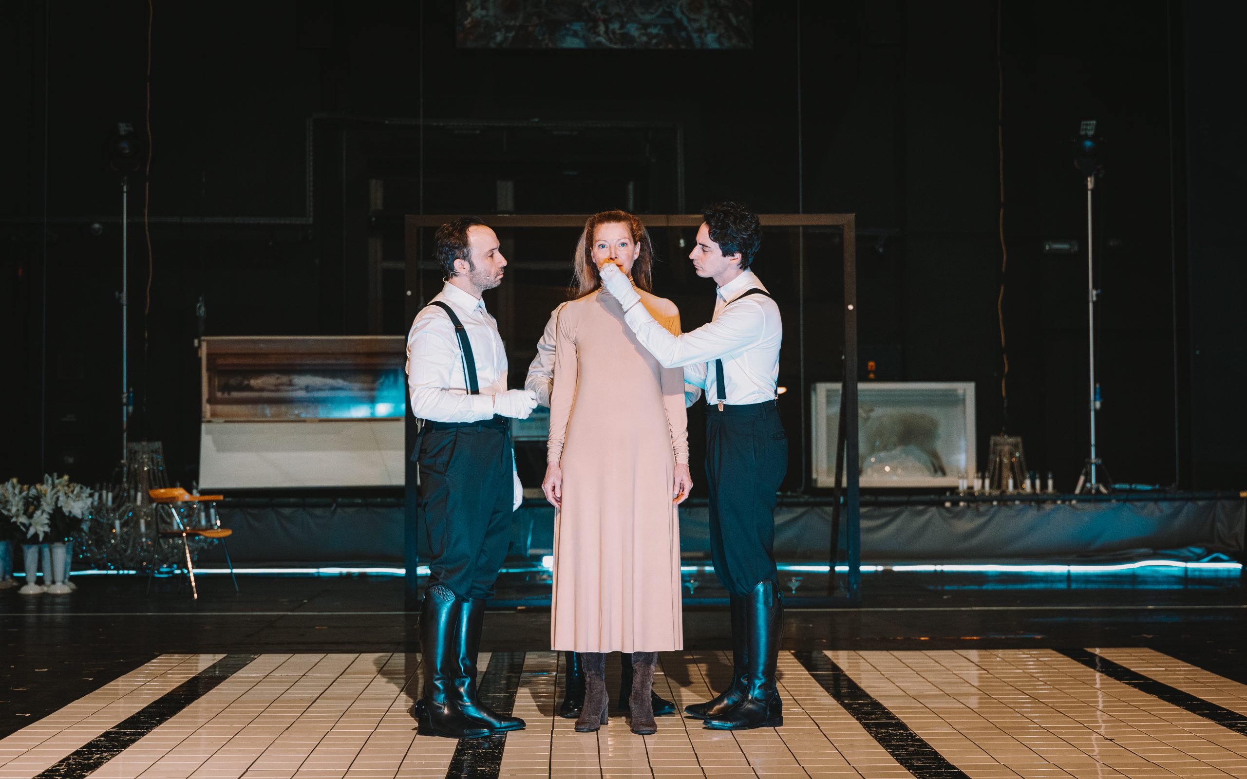 The dramaturgical analysis by Maja Borin opens onto the broader historical and symbolic horizon of the tragedy. The world of Mary Stuart is that of a Renaissance rupture in which – if we may paraphrase Gramsci’s well-known formulation of interregnum – the medieval order is in the process of disintegration, while the new world has yet to assume a stable form; it is precisely within this unstable in-between that monsters are born. As in Hans Holbein the Younger’s The Ambassadors, scientific, political, and cultural achievements are accompanied by the emergence of vanitas in the foreground: a persistent reminder of transience, the hollowness of power, and human vanity. Death is not relegated to the margins but occupies the very centre of this world, casting its constant shadow over every political act and every sovereign privilege. In this sense, Mary Stuart is not merely a drama about two queens, but a drama of a system that, in order to sustain its own order, repeatedly requires a sacrifice.