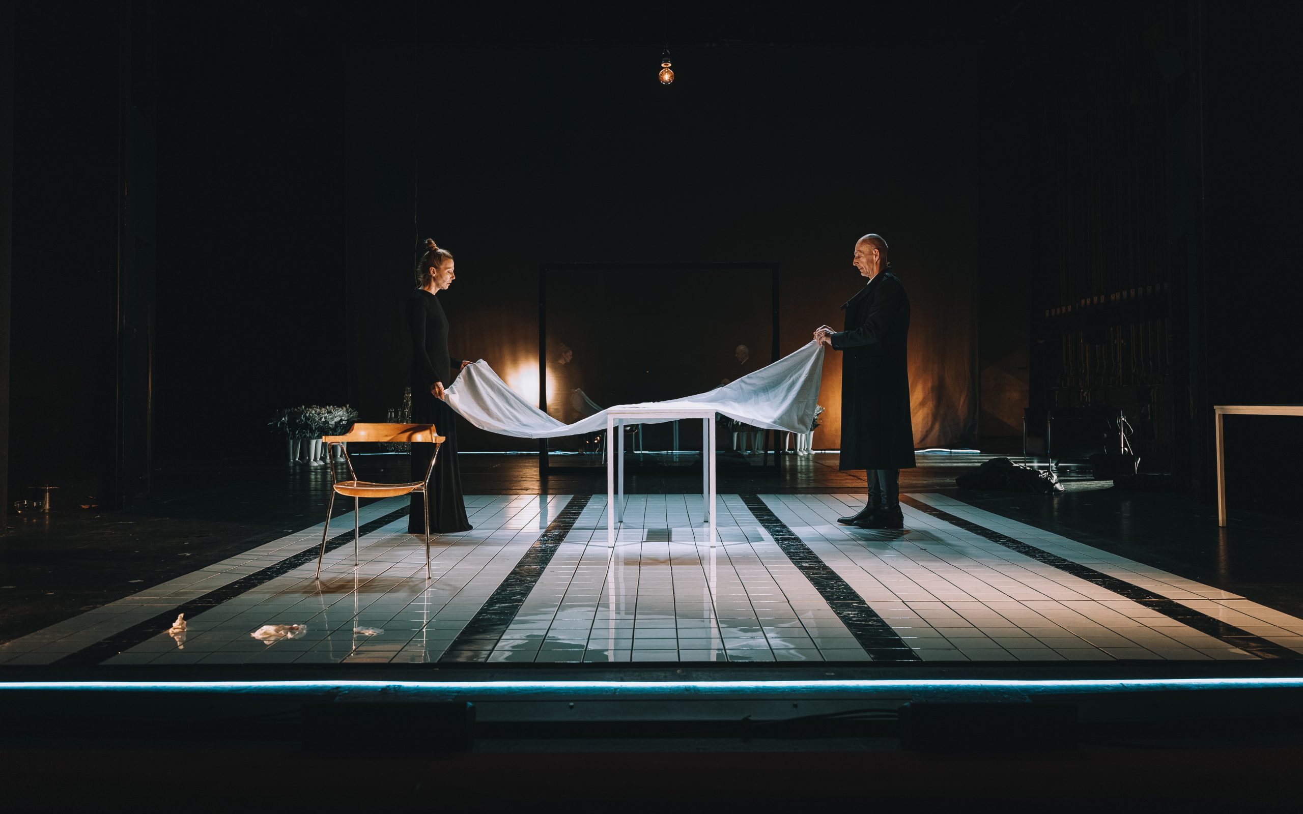 Friedrich Schiller’s Mary Stuart, in the staging and co-authorship of Diego de Brea, is not a historical drama in the classical sense, but a rigorously focused inquiry into the mechanisms of autocratic power – power that perceives truth as a threat. At the heart of the production stands a judicial trial, a dispositif ostensibly designed to guarantee justice, yet exposed here as an instrument of political expediency. As the director suggests, contemporary power no longer requires even the semblance of truthfulness; instead, it actively manufactures reality through falsehood. The production thus reads Schiller’s drama through the prism of the present, a moment in which the articulation of truth has itself become a perilous act.